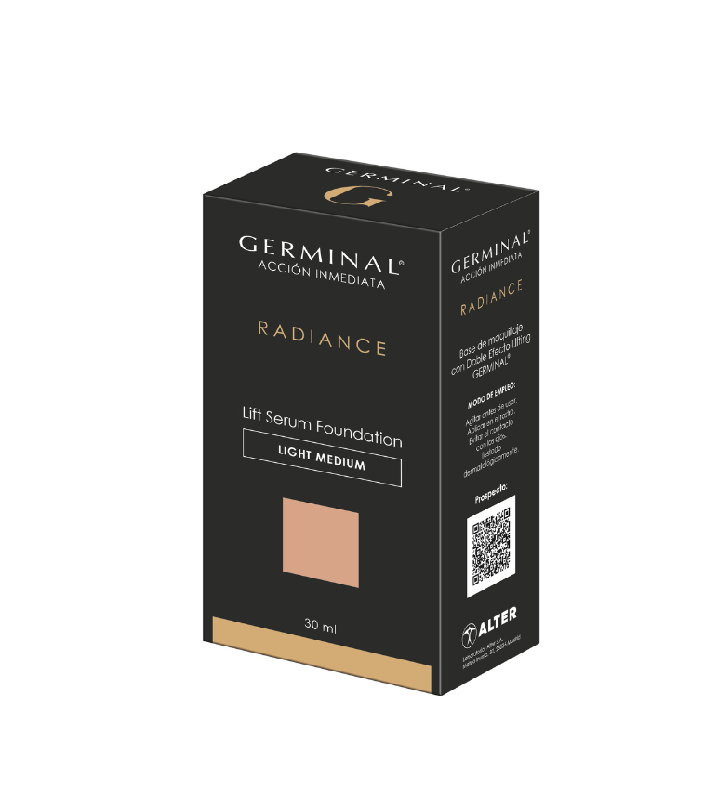 - GERMINAL® Acción Inmediata Radiance Lift Serum Foundation Light Medium se aplica en el rostro después de la rutina facial como último paso.